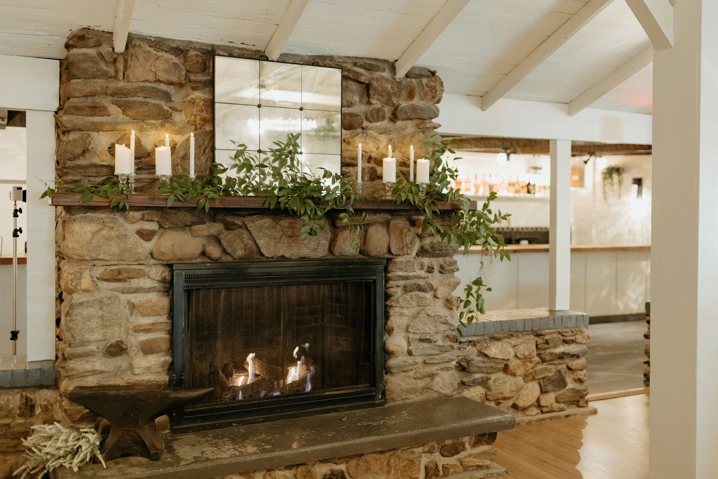 For autumn and winter weddings or for those who love the idea of a warm, inviting celebration, we have The Lodge at The Hops. The indoor setting highlights rustic wedding decor in Connecticut with exposed wood beams, wrought iron fixtures, and glowing chandeliers. It's the kind of space that feels like a warm embrace.